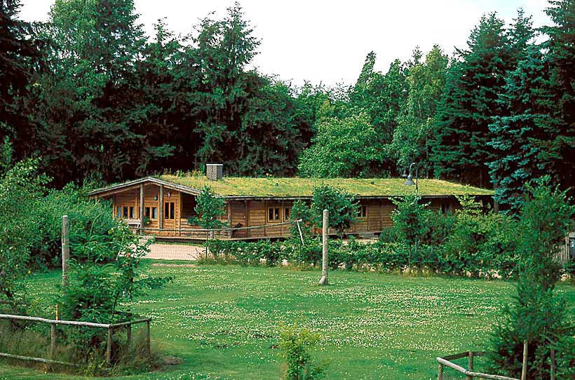 Unser Jugendwaldheim ist ein 250 Quadratmeter großes, komplett aus heimischem Lärchenholz gebautes Blockhaus, das mit einem Grasdach versehen ist. Hier fängt der Wald schon im Haus an und geht vor der Haustür weiter.